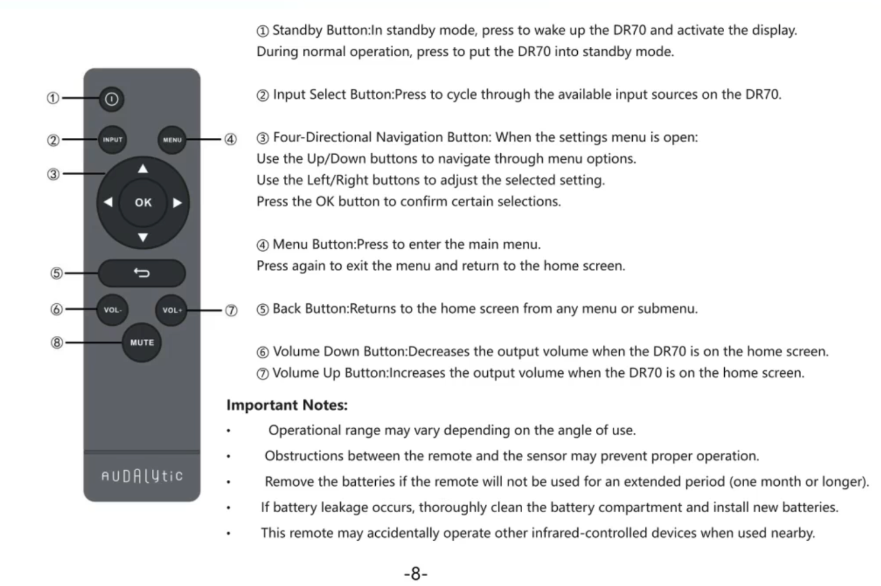The DR70 can run variable output, but owners commonly recommend treating it as a DAC and controlling volume at your amp or preamp. The front touch volume controls are not everyone’s favourite. Remote volume is generally the better experience if you do use the DR70 as a preamp.
